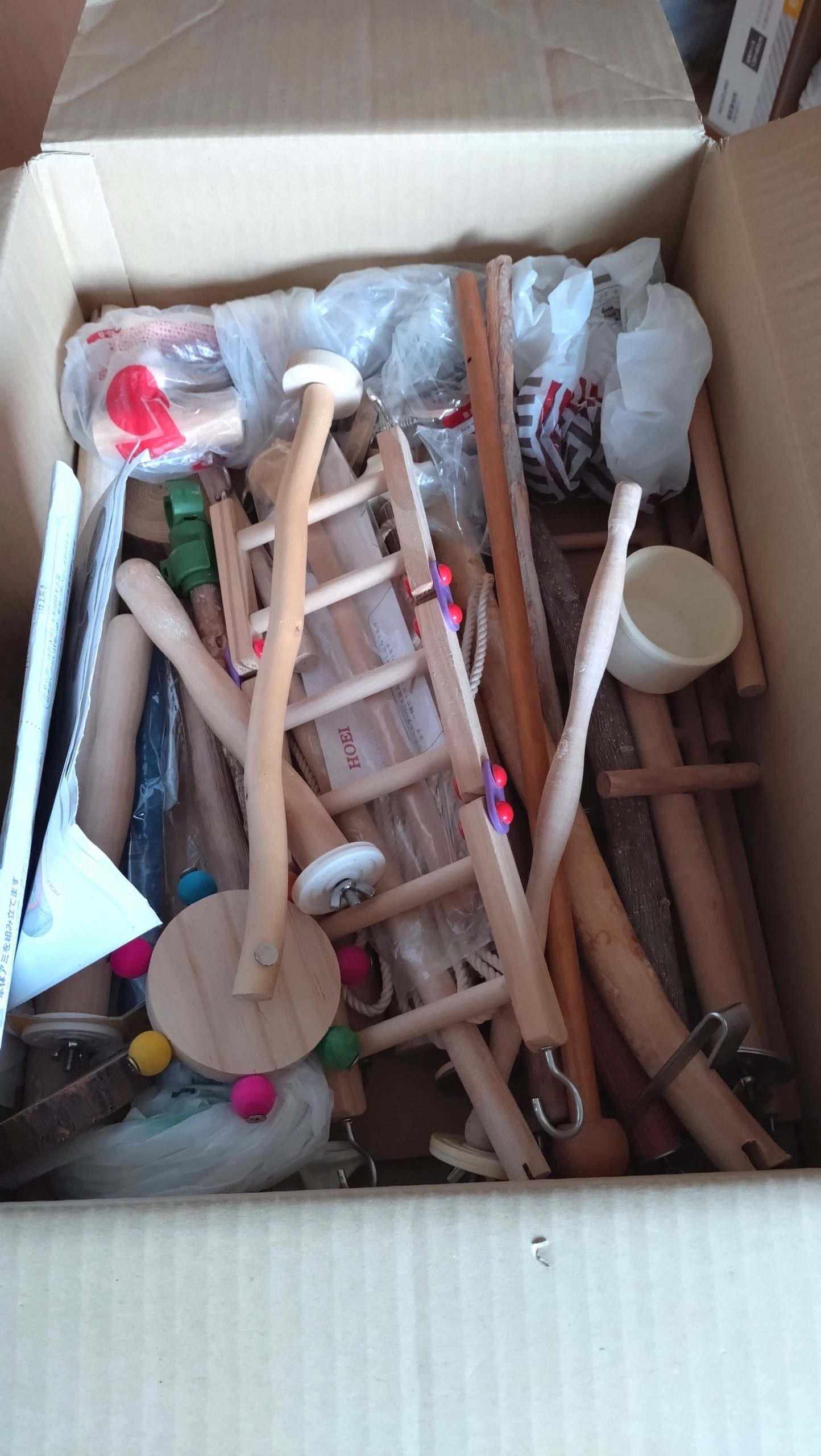 鳥の止まり木。鳥用品が多いので、かさばります。