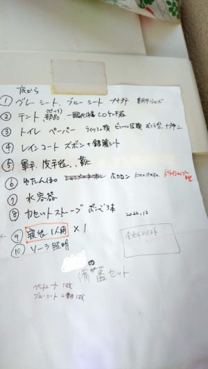 主に、サバイバル用品で、調理、食料用は、別トランクに準備済。