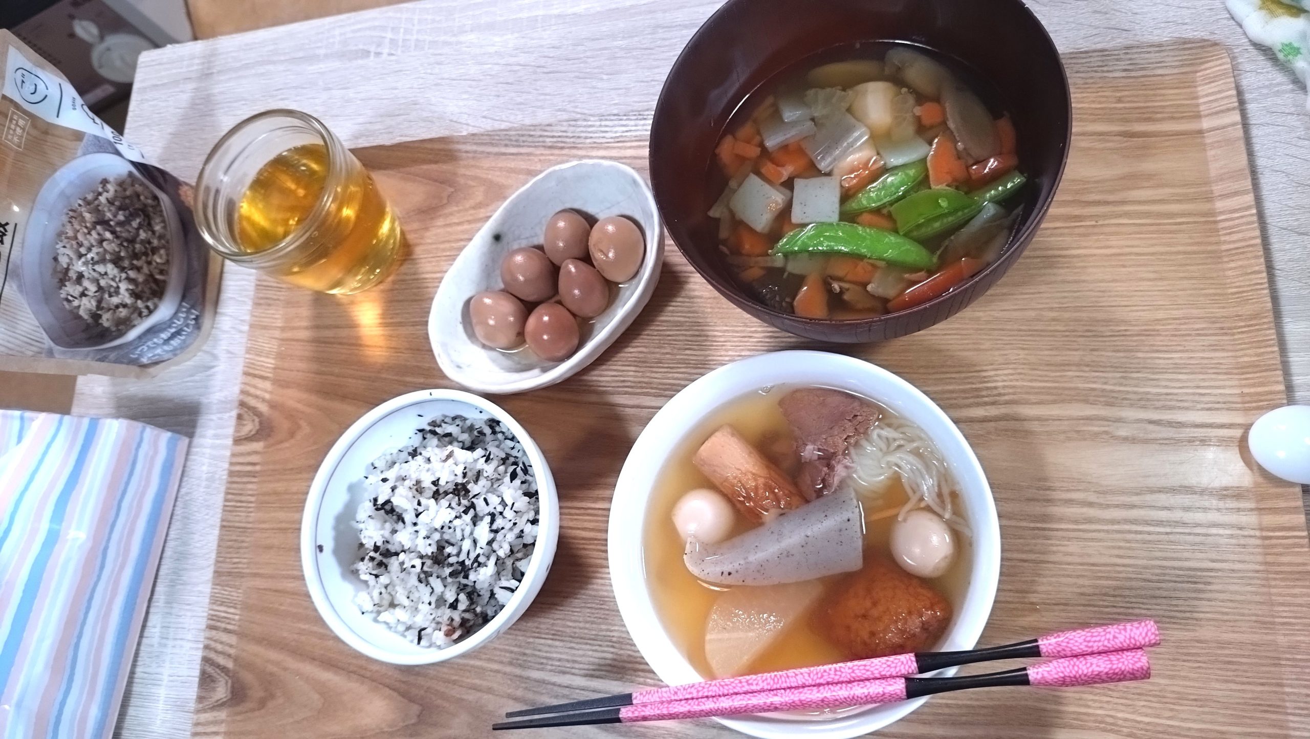 昨夜の夕食も、備蓄食料で、超簡単に済ませたので、楽できました。