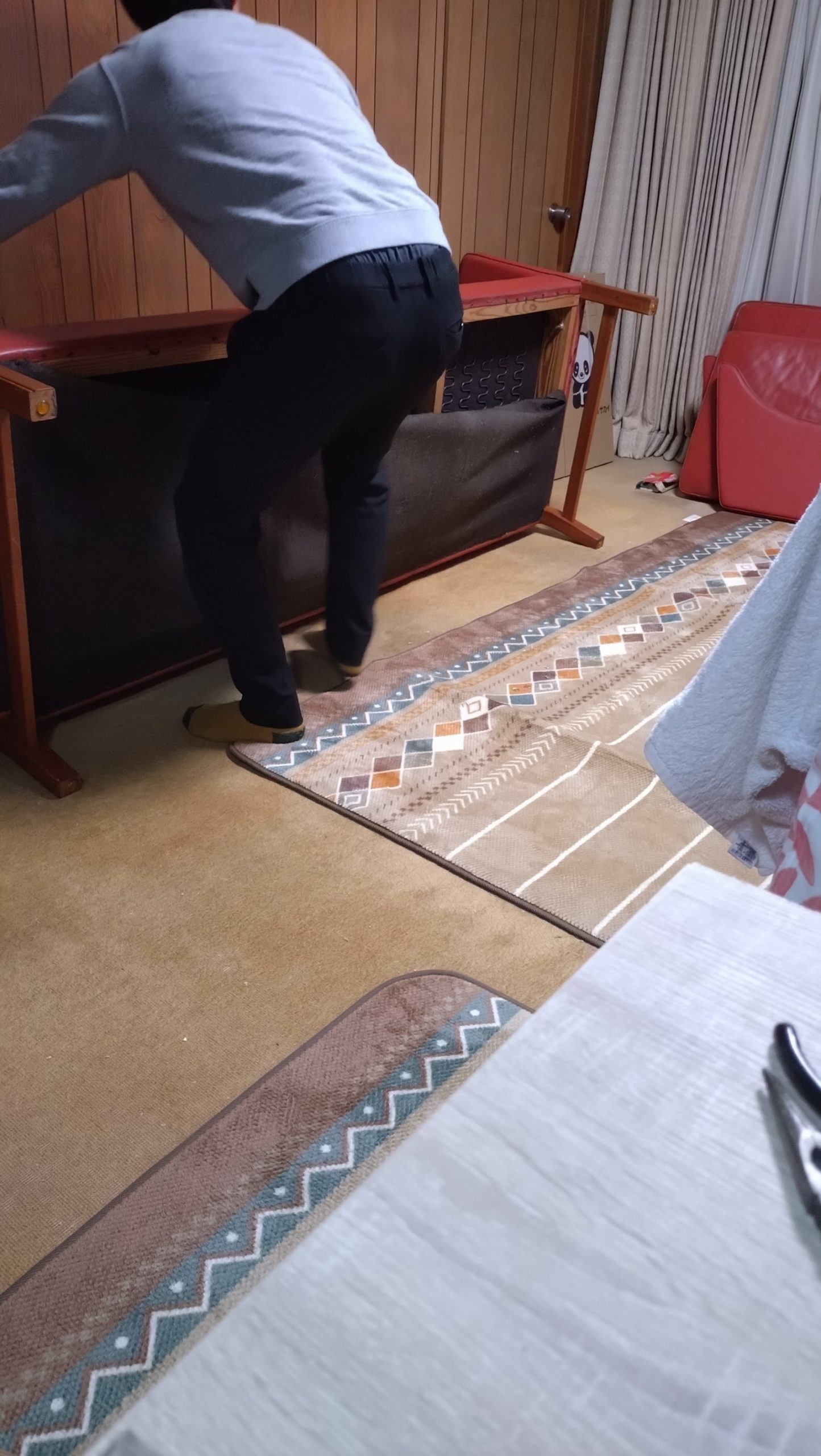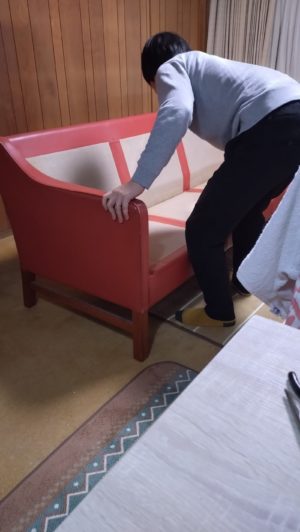 恐ろしく重いソファーなので、今、腰を傷めたら、困るので、口だけお手伝い(笑)