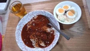 そろそろ冷蔵庫の中身を減らしていかないといけないので、レトルトごはんになりました。