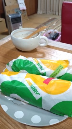 晩御飯、ナシ、と言うわけにはいかないので、帰りにサブウェイをテイクアウト。