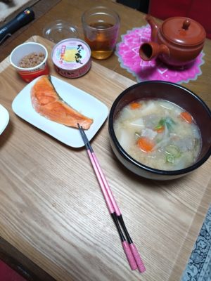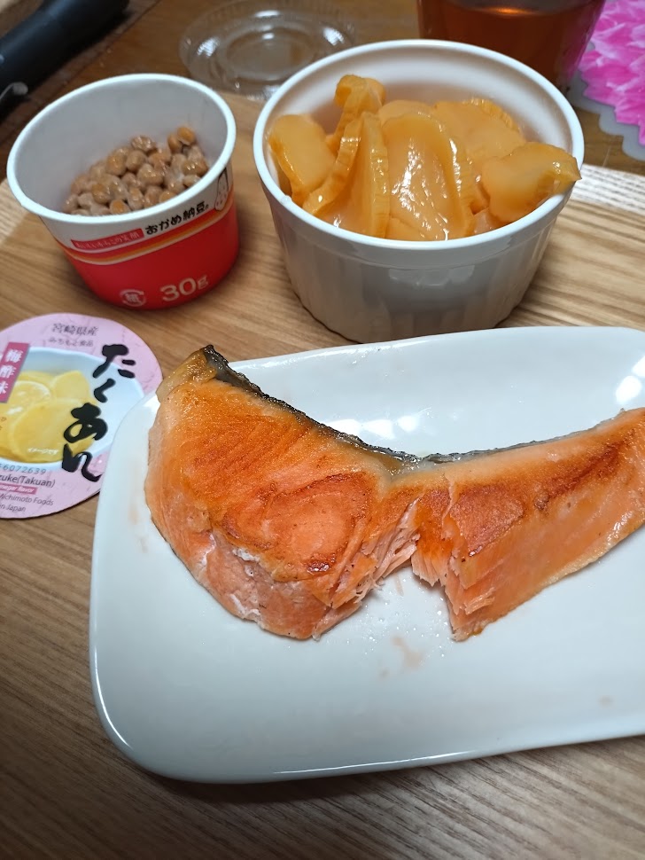 おかずは、鮭と納豆だけです。