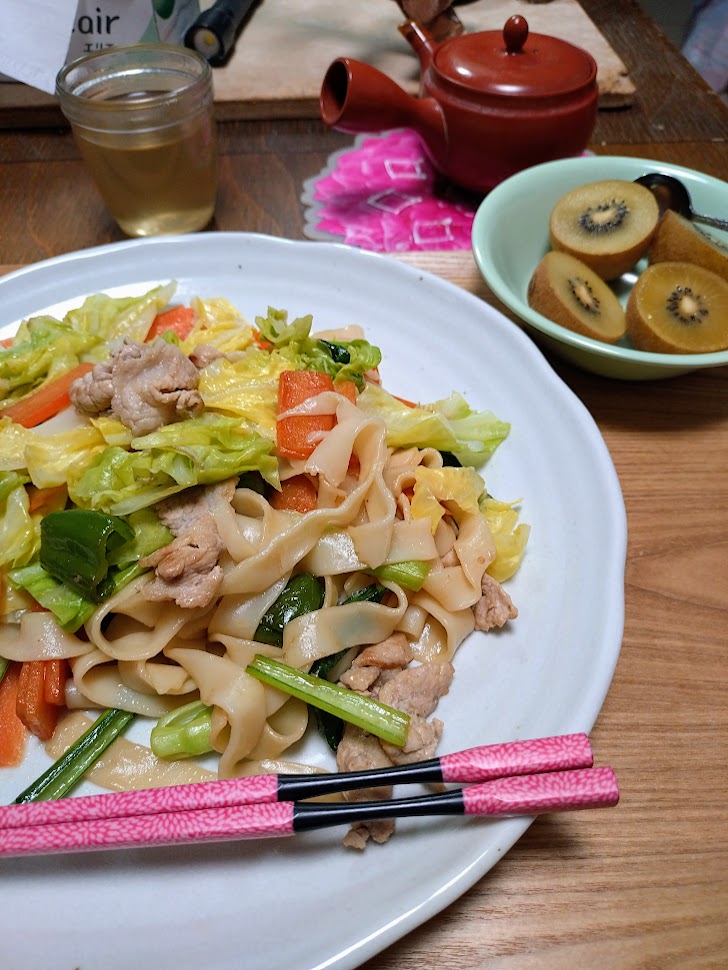 焼きうどんにしました。小松菜が美味しかったので、今日も小松菜を使おうと思います。