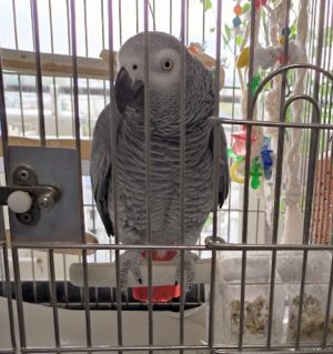 ヨウムは、最近、ウグイスの鳴きまねをしています。( *´艸`)