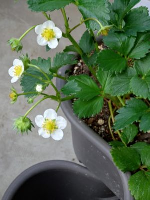 ピンクの四季咲のイチゴも良く咲いています。